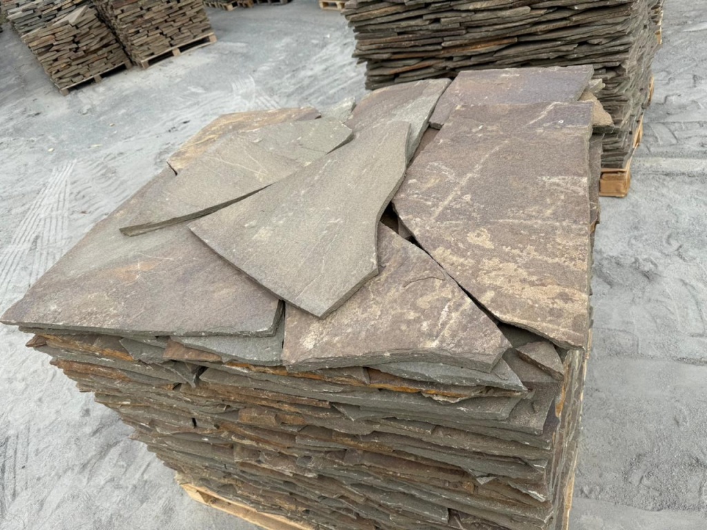 Плитняк песчаник серо-зелёный для облицовки цоколя, отмостки 20-25 мм
