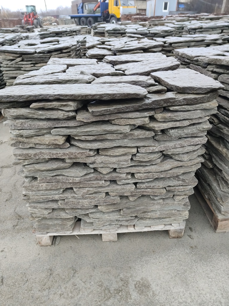 Плитняк песчаник дракон серо-зелёный галтованный для облицовки цоколя, отмостки 20-35 мм